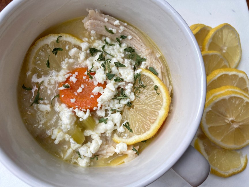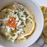 - Scoop out around 1/2 cup of soup from the pot, and pour it SLOWLY into the egg/lemon mixture, whisking the entire time to prevent the eggs from scrambling. Repeat so you now have around 1 cup of soup mixed with the egg/lemon. Add this mixture back to the pot.
