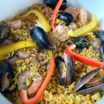 - Remove the seafood from the pan with a slotted spoon. Serve the seafood over the rice, or mix it all up together.